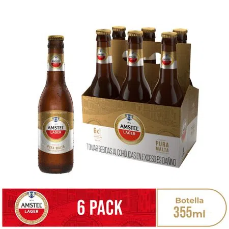 AMSTEL BOTELLA LAGER DORADA 355ml 6PACK